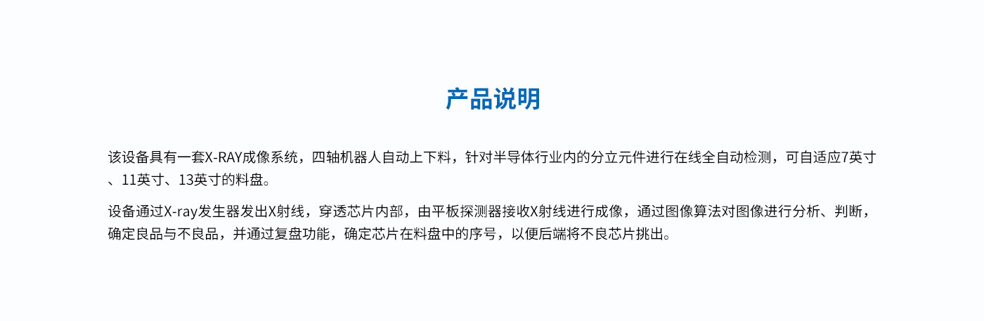 品牌:正业 可检测样品:芯片、电池、电容等 自动化:在线全自动检测 检测范围:产品内部缺陷、异物